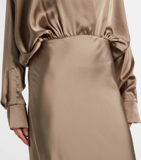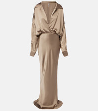 Award-winning designer Norma Kamali's playful approach to design has taken the world by storm since the 1960s. This satin gown is shaped with a relaxed-fit shirting-style bodice and elegant floor-length drape. Product Details - Material: 100% polyester - Care instructions: hand wash - Made in China - Designer color name: Elm - Item color: brown - Closure: VELCRO® fastening - Elasticated waistband - Item number: P01128074 Size & Fit - True to size - Dropped shoulders - Loose bodice, fitted skirt - Non-stretchy fabric - The model seen in the picture is 178cm-5'10" and wearing a size XS