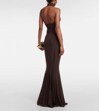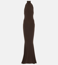 Stretch-jersey turtleneck gown Chocolate