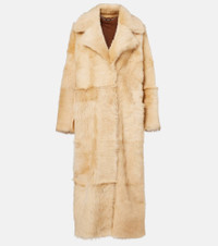 Nour Hammour's female-gaze approach to leatherworking brings a new, contemporary edge to outerwear favorites. The Evita Long coat is entirely constructed from sumptuous shearling and features oversized notched lapels and spacious patch pockets. Product Details - Material: 100% shearling - Care instructions: specialist clean - Made in Turkey - Designer color name: Butter - Item color: beige - Lining: 100% lamb leather - Notched lapel - Closure: hook fastening - Pockets: side slit pockets - Item number: P01102424 Size & Fit - Fits large to size - we recommend trying one size smaller - Straight fit - Non-stretchy fabric - The model seen in the picture is 178cm-5'10" and wearing a size FR 34