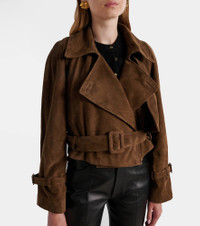 Nour Hammour’s craftsmanship defines the brand’s unique approach to leather outerwear. The Hatti suede trench coat is designed with a cropped, relaxed silhouette and features a belt at the waist for an adjustable fit. Product Details - Material: 100% lamb leather (suede) - Care instructions: specialist clean - Made in Turkey - Designer color name: Brunette Suede - Item color: brown - Lining: 63% cupro, 37% viscose - Sleeve lining: 100% silk - Collar: classic (Straight point) - Belt loops - Detachable belt - Fully lined - Item number: P01060707 Size & Fit - True to size - Loose fit, comes with belt - Non-stretchy fabric - Slightly cropped - The model seen in the picture is 178cm-5'10" and wearing a size XS