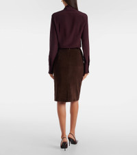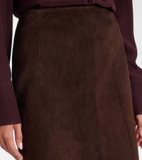 Nour Hammour's designs are destined to become timeless essentials thanks to the brand's artisanal soul. The Lady Skirt midi skirt is made from suede, blending a classic, refined shape with a bold finish. Product Details - Material: 100% goat leather (suede) - Care instructions: specialist clean - Made in Turkey - Designer color name: Mocha Suede - Item color: brown - Lining: 63% cupro, 37% viscose - Closure: zipped back - Fully lined - Item number: P01060725 Size & Fit - True to size - Non-stretchy fabric - Sits low on the hips - slit length 22cm-8.5" - The model seen in the picture is 178cm-5'10" and wearing a size FR 36