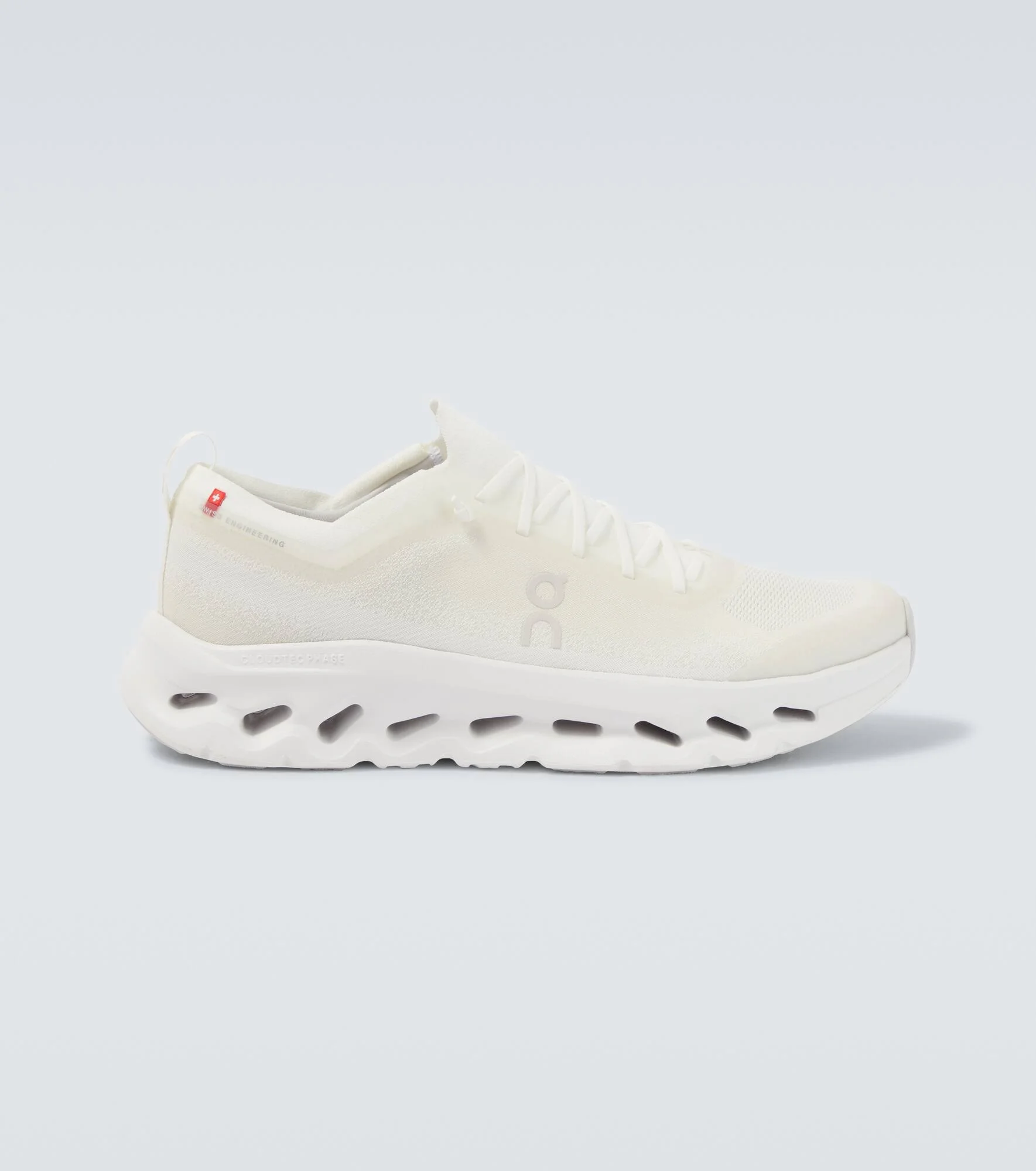 On's designs perfectly fuse innovative technology and modern style. The Cloudtilt Moon running shoes feature lightweight uppers constructed for a sock-like fit, Helion superfoam for optimal cushioning, and speed lacing. Product Details - Upper: fabric, rubber - Lining: fabric - Sole: fabric insole, rubber sole - Toe shape: almond toe - Made in Indonesia - Includes: shoe box - Designer color name: White / Frost - Item color: white - Closure: quick-lacing system - Item number: P01122028 Size & Fit - True to size - US sizes