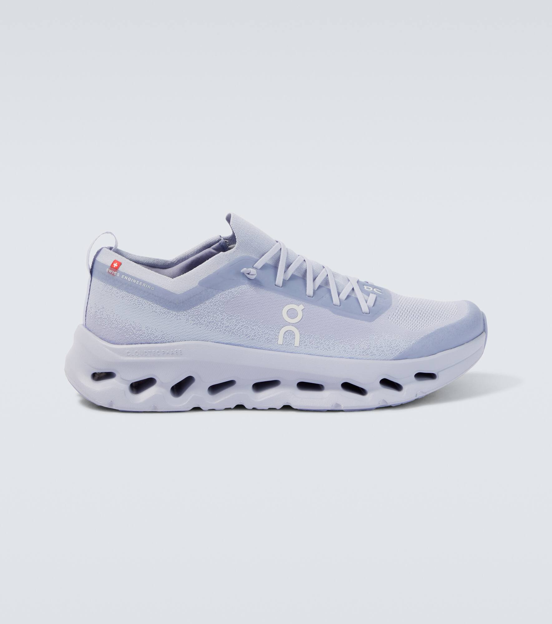 On's designs perfectly fuse innovative technology and modern style. The Cloudtilt Moon running shoes feature lightweight uppers constructed for a sock-like fit, Helion superfoam for optimal cushioning, and speed lacing. Product Details - Upper: fabric, synthetic material - Lining: fabric - Sole: fabric insole, rubber sole - Toe shape: almond toe - Made in Indonesia - Includes: shoe box - Designer color name: Nimbus | Nimbus - Item color: blue - Closure: quick-lacing system - Item number: P01122029 Size & Fit - Fits slightly small to size - we recommend trying a half size larger - US sizes