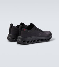 On's designs perfectly fuse innovative technology and modern style. The Cloudtilt Moon running shoes feature lightweight uppers constructed for a sock-like fit, Helion superfoam for optimal cushioning, and speed lacing. Product Details - Upper: fabric, rubber - Lining: fabric - Sole: fabric insole, rubber sole - Toe shape: round toe - Made in Indonesia - Includes: shoe box - Designer color name: Black / Black - Item color: black - Closure: quick-lacing system - Item number: P01122030 Size & Fit - Fits slightly small to size - we recommend trying a half size larger - US sizes