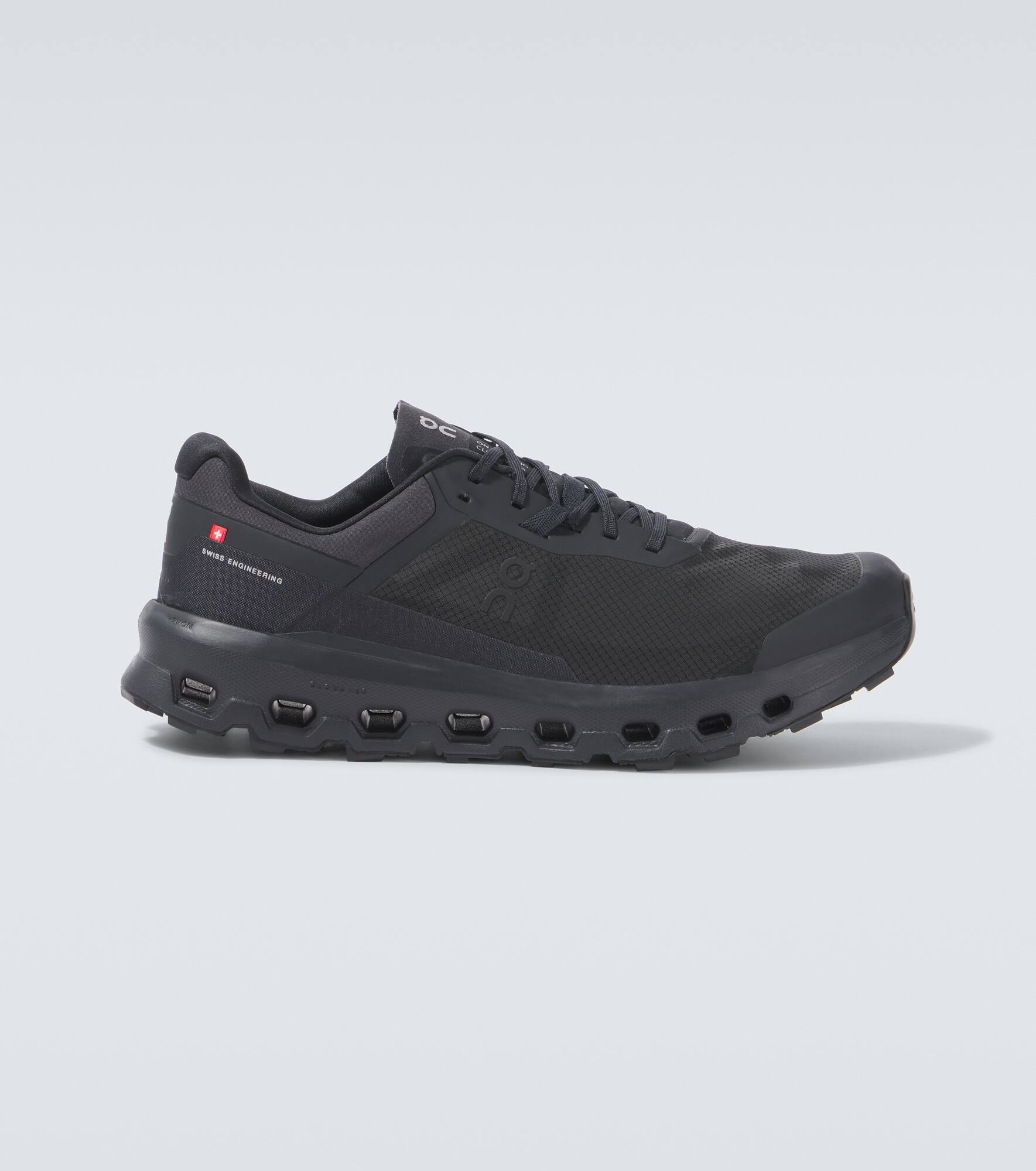 Designed for dynamic strides and outdoor pursuits, the Cloudvista 2 running shoes from On are engineered for performance. Now lighter and more responsive thanks to its Softer Helion™ superfoam midsoles, this black style ensures optimal grip and traction on uneven terrains. Product Details - Upper: fabric - Lining: fabric - Sole: fabric insole, rubber sole - Toe shape: round toe - Made in Vietnam - Includes: shoe box - Designer color name: Black | Black - Item color: black - Closure: lace-up - Trim: rubber - Item number: P01013786 Size & Fit - True to size - US sizes