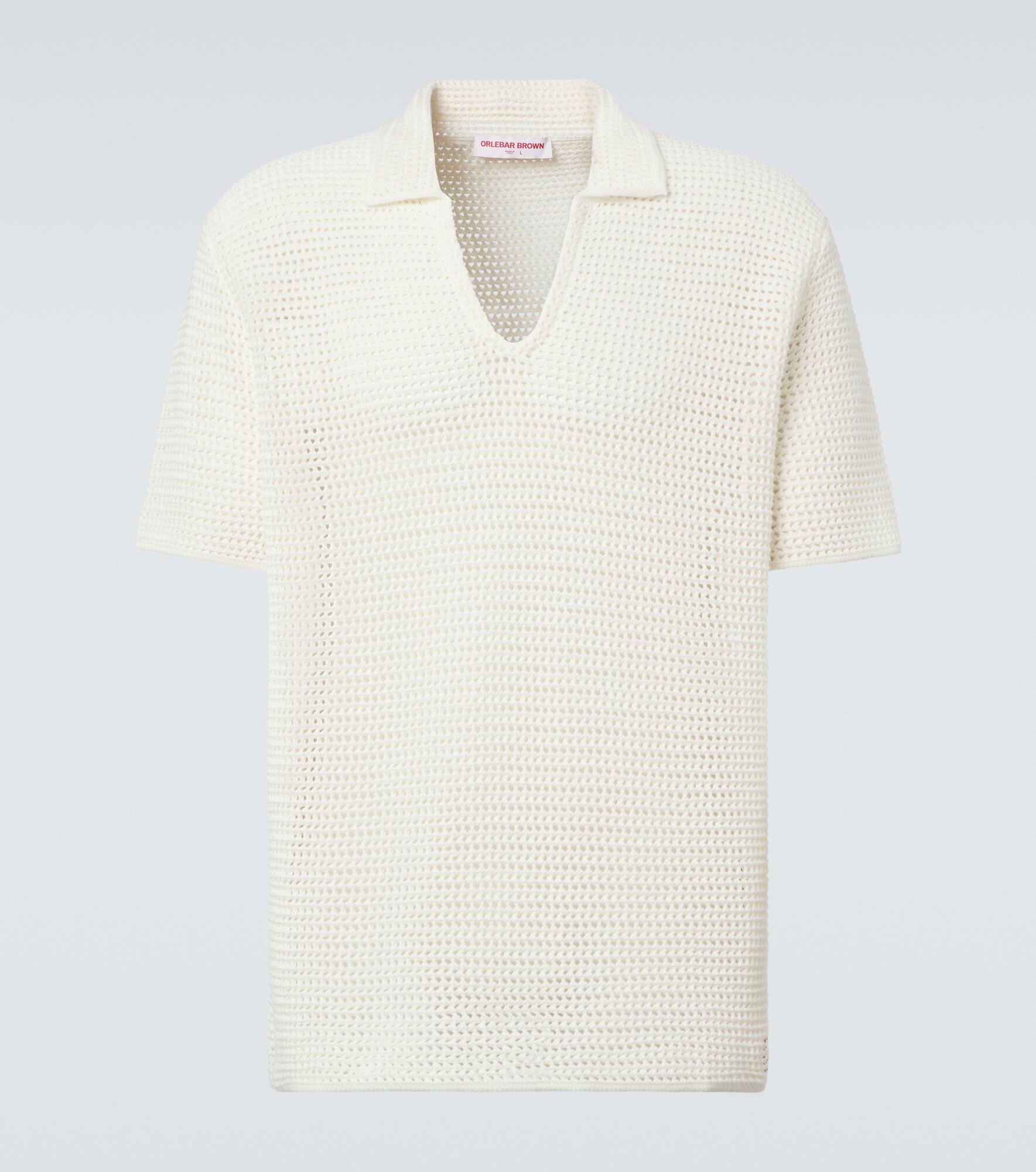 The Batten polo shirt from Orlebar Brown features a crochet knit design made from pure cotton. The relaxed silhouette is complete with a collar, open neckline, and contrasting embroidery at the hem. Product Details - Material: 100% cotton - Care instructions: machine wash at 30 degrees - Made in Italy - Designer color name: Sea Mist - Item color: white - Item number: P01059614 Size & Fit - True to size - Dropped shoulders - Designed for a loose fit - Non-stretchy fabric - Falls to the hip - Height of model is 190cm-75" and wears a size L