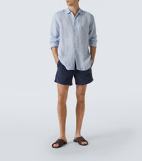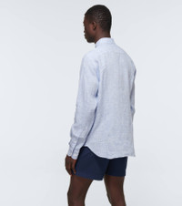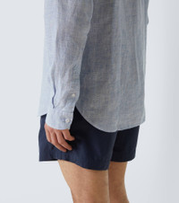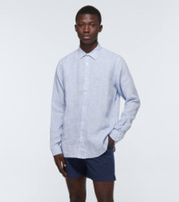 Orlebar Brown’s classic striped shirt in blue is cut from breathable linen, offers a relaxed fit, and is finished with mother-of-pearl buttons and a rounded hem edge. Product Details - Care instructions: machine wash at 30 degrees - Buttoned cuffs - Material: 100% linen - Designer color name: Navy/White - Closure: buttoned front - Made in Portugal - Item number: P00598708 Size & Fit - True to size - Regular fit - Lightweight material - Falls below the hip - The model in the picture is 185cm-6'1" and wearing a size M