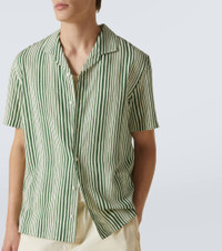 Hibbert Camp-Collar Striped Lyocell Shirt Green