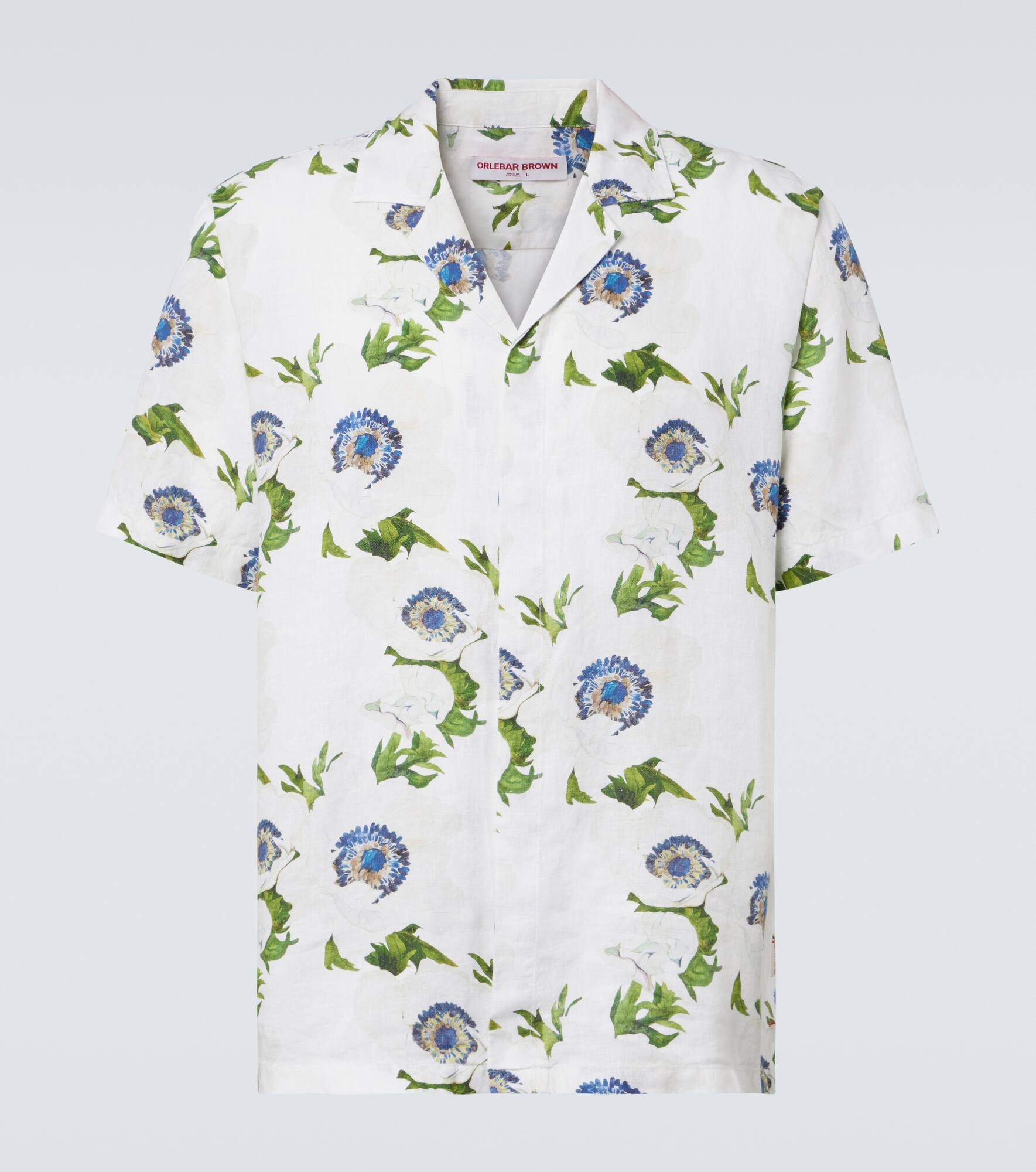 Orlebar Brown reinvigorates resortwear with thoughtful construction and versatility in mind. Made purely from linen, the Maitan shirt is a short-sleeved style with a floral print. Product Details - Material: 100% linen - Care instructions: machine wash at 30 degrees - Made in Portugal - Designer color name: White Sand - Item color: multicolor, white - Closure: button fastening - Item number: P01059600 Size & Fit - True to size - With pleats in the back - Classic fit - Non-stretchy fabric - Falls below the hip - Height of model is 190cm-75" and wears a size L