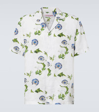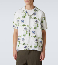 Maitan Camp-Collar Floral-Print Linen Shirt White