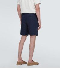 Tailored with the precision of formal pants but made from relaxed Italian-woven linen, these slim-fit navy shorts from Orlebar Brown are designed for vacation dressing. Product Details - Closure: zipper fly, button and hook fastenings - Care instructions: machine wash at 30 degrees - Material: 100% linen - Designer color name: Navy - Pockets: side slit pockets, back pockets - Made in Portugal - Item number: P00481183 Size & Fit - True to size - Adjustable at the waist - Mid-weight material - Straight leg - Inseam length approx: 22cm-8.5" - The model in the picture is 185cm-6'1" and wearing a size 32