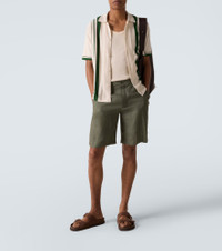 Orlebar Brown reinvigorates resortwear with thoughtful construction and versatility in mind. The Tiernan bowling shirt is crafted from lightweight cotton and features a relaxed silhouette with a classic collar and a striped motif. Product Details - Material: 100% cotton - Care instructions: machine wash at 30 degrees - Made in Italy - Designer color name: White Sand/Tarragon Green - Item color: white, green - Closure: buttoned front - Item number: P01133928 Size & Fit - True to size - Slim fit - Stretchy fabric - Falls to the hip - The model in the picture is 185cm-6'1" and wearing a size L