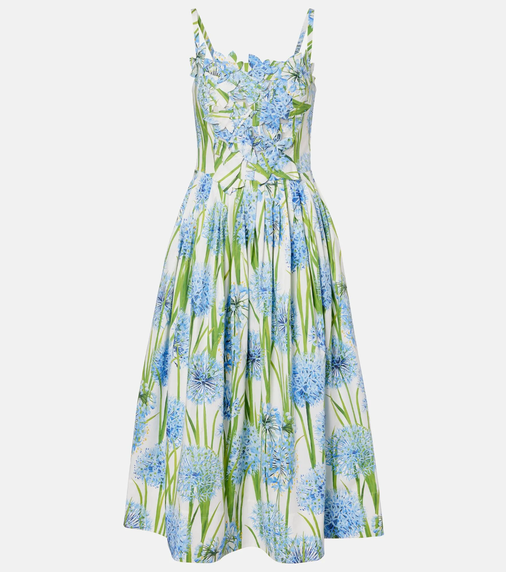 Oscar de la Renta's designs bring the beauty of nature to ready-to-wear. Made from cotton-blend poplin, the Allium midi dress features a charming floral print and matching floral appliques at the bodice. Product Details - Material: 97% cotton, 3% elastane - Care instructions: spot clean - Made in Italy - Designer color name: Blue/White - Item color: blue, white - Lining: 100% cotton - Closure: concealed zipped back - Pockets: side slit pockets - Item number: P01123641 Size & Fit - True to size - Cinched waist - Non-stretchy fabric - The model seen in the picture is 178cm-5'10" and wearing a size US 4