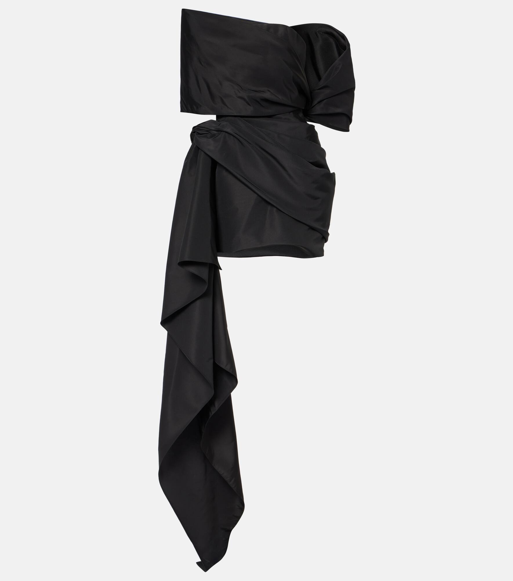 Off-the-shoulder asymmetric draped silk-faille mini dress