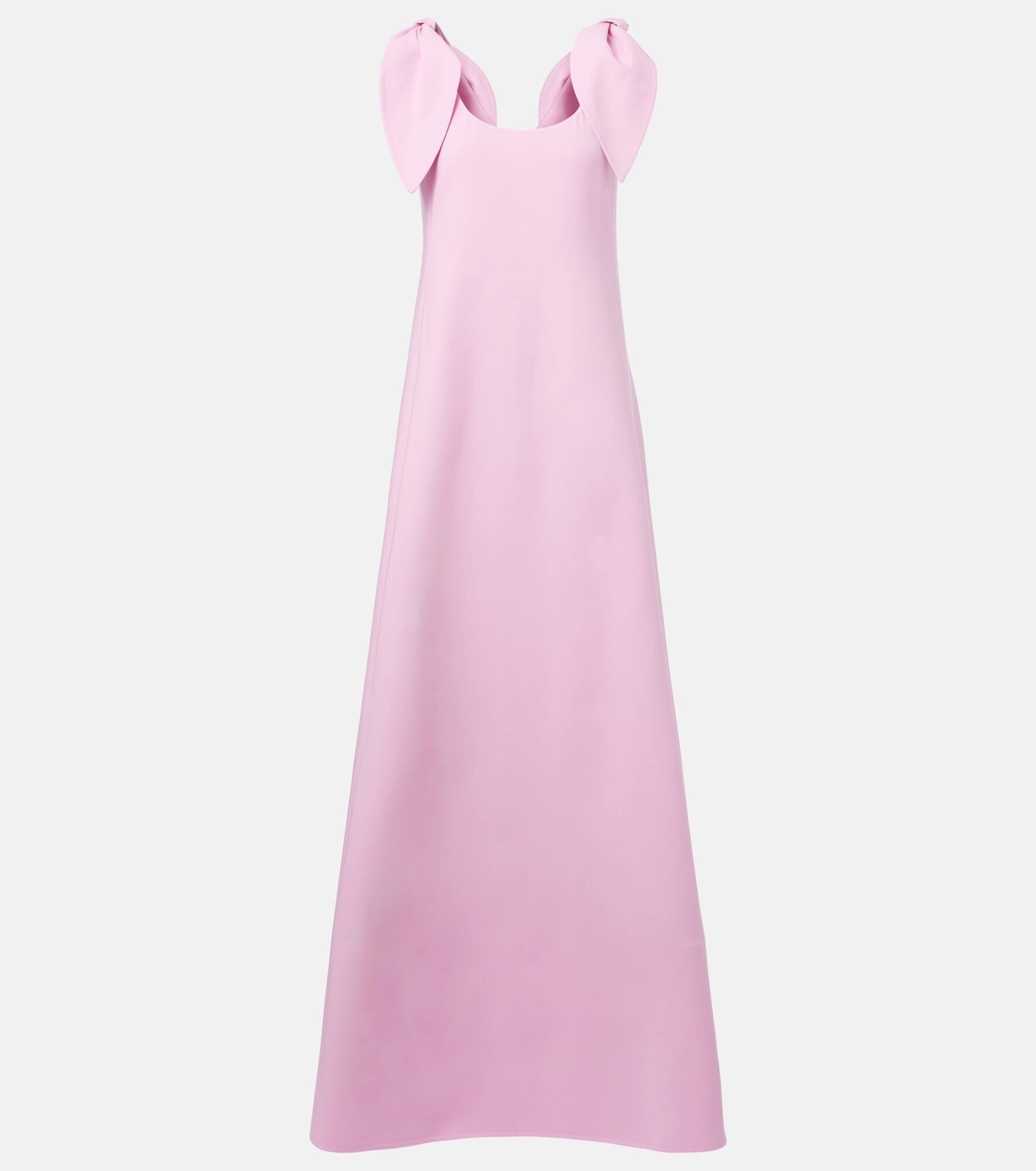 Oscar de la Renta's grandiose gowns are designed to grace red carpets and ballrooms. This wool-blend gown is minimalist but not simple, due to the cheerful hue and the bow details on the shoulders. Product Details - Material: 94% wool, 5% elastane, 1% other fibres - Care instructions: dry clean - Made in Italy - Designer color name: Pink - Item color: pink - Closure: zipped back - Item number: P01047979 Size & Fit - True to size - Cinched waist - Non-stretchy fabric - The model seen in the picture is 178cm-5'10" and wearing a size US 4