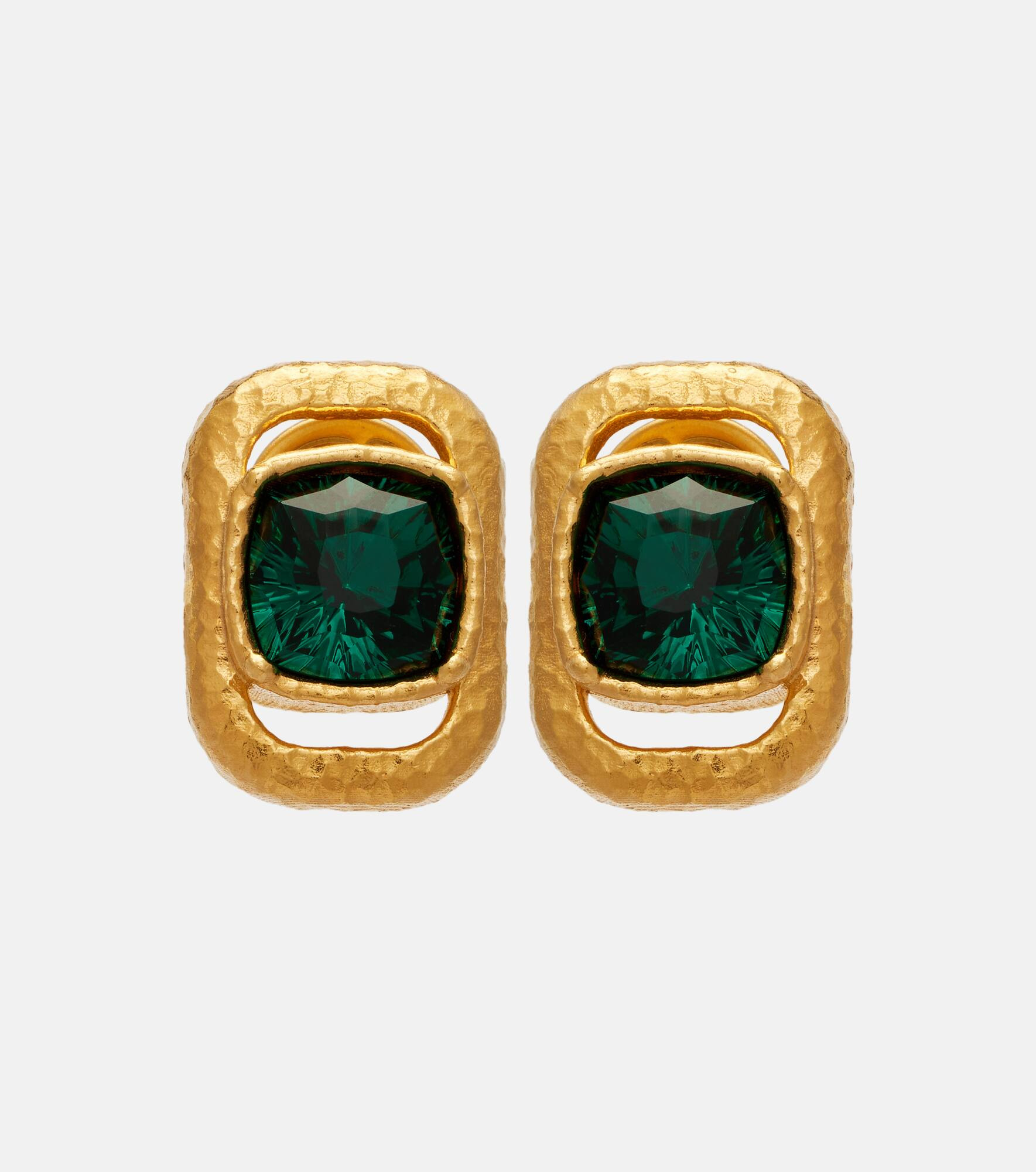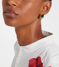 Made from gold-tone brass, these earrings from Oscar de la Renta are equally glamorous and elegant. The pair features pin fastening backs and is embellished with central glass crystal accents. Product Details - Material: brass, glass - Made in India - Item color: gold, green - Closure: pin fastening - Item number: P01067338 Size & Fit - Length 2cm-1" - Width 1,5cm-0.5"