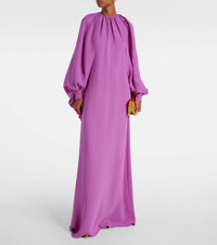 Oscar de la Renta's grandiose gowns are designed to grace red carpets and ballrooms. This piece is cut from an elegant silk blend and features draped, billowy sleeves that gather at the wrists. Product Details - Material: 94% silk, 6% elastane - Care instructions: dry clean - Made in India - Designer color name: Aster - Item color: purple - Hardware color: gold - Closure: zipped back - Cuff: buttoned - Item number: P01047872 Size & Fit - True to size - Sizing adapted to taller women - Designed for a loose fit - Non-stretchy fabric - The model seen in the picture is 178cm-5'10" and wearing a size XS