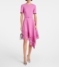 Belted asymmetric guipure lace-trimmed wool-blend dress