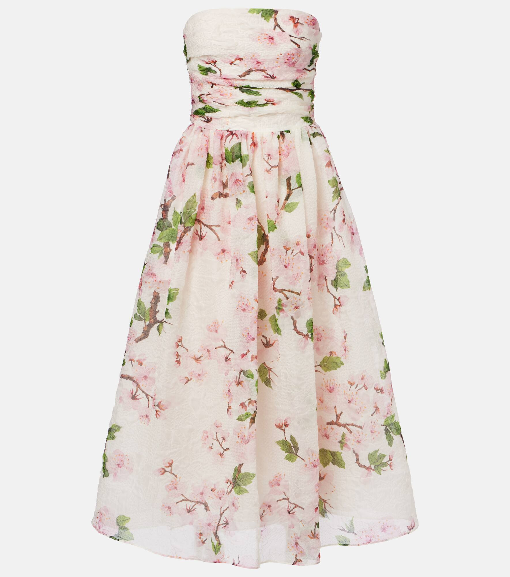 Known for its romantic rendering of blooms, Oscar de la Renta's designs bring the beauty of nature to ready-to-wear. This exquisite bustier dress is made from delicate silk-blend organza and complete with a floral motif for added charm. Product Details - Material: 67% silk, 33% polyamide - Care instructions: dry clean - Made in Italy - Designer color name: Pink/Ivory - Item color: pink, multicolor - Lining: 100% silk - Closure: zipped back - Corset - Item number: P01047949 Size & Fit - True to size - Strapless - Internal corset with underwire support - Cinched waist - Non-stretchy fabric - The model seen in the picture is 178cm-5'10" and wearing a size US 4