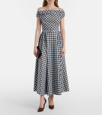 Gingham cotton-blend midi dress
