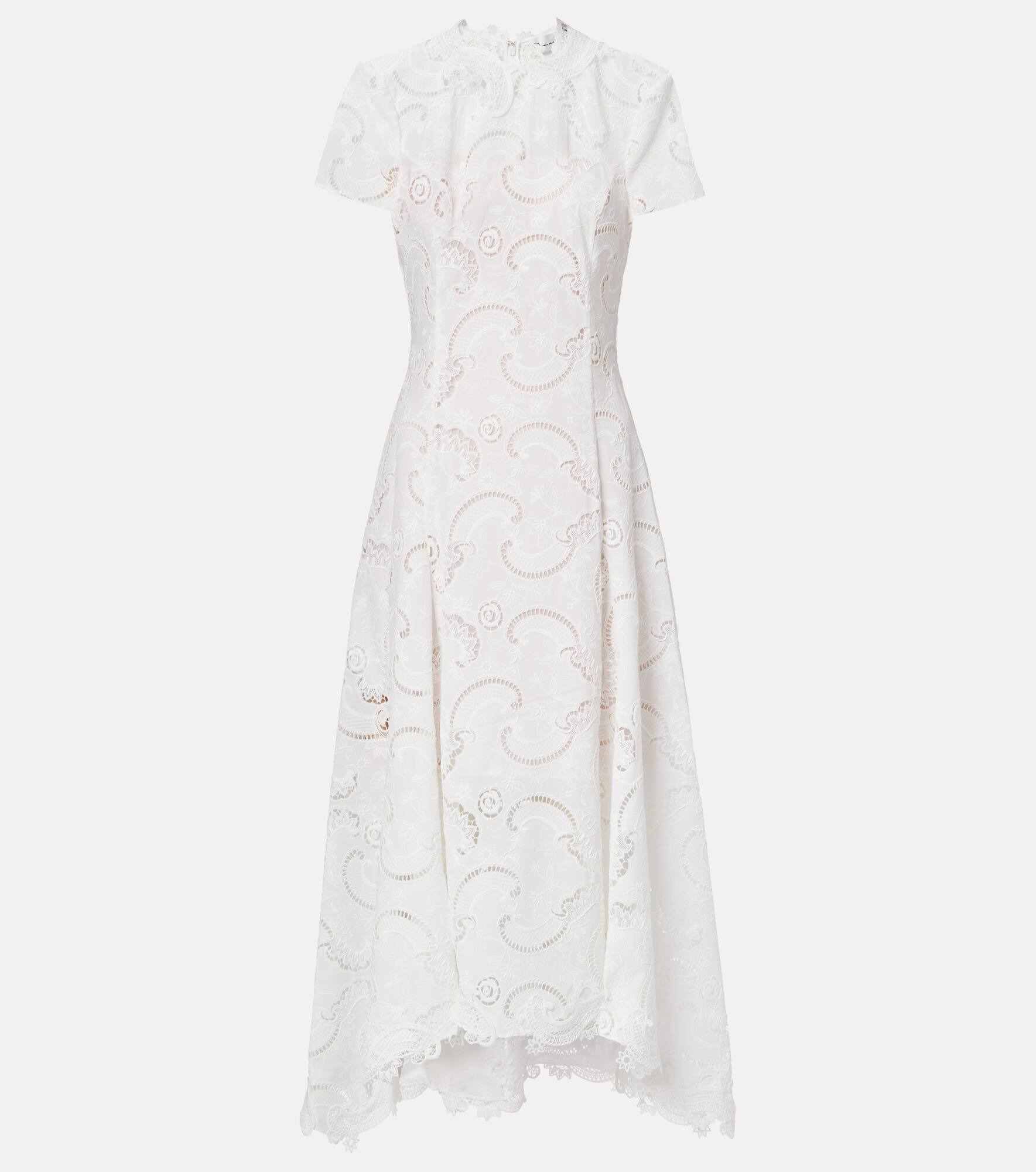 Oscar de la Renta's designs bring the beauty of nature to ready-to-wear. This midi dress is made in Italy from guipure lace and dons subtle embroidery over silk lining. Product Details - Material: 100% polyester - Care instructions: dry clean - Made in Italy - Designer color name: White - Item color: white - Lining: 100% silk - Closure: zipped back - Item number: P01047936 Size & Fit - True to size - Cinched waist - Non-stretchy fabric - The model seen in the picture is 178cm-5'10" and wearing a size US 4