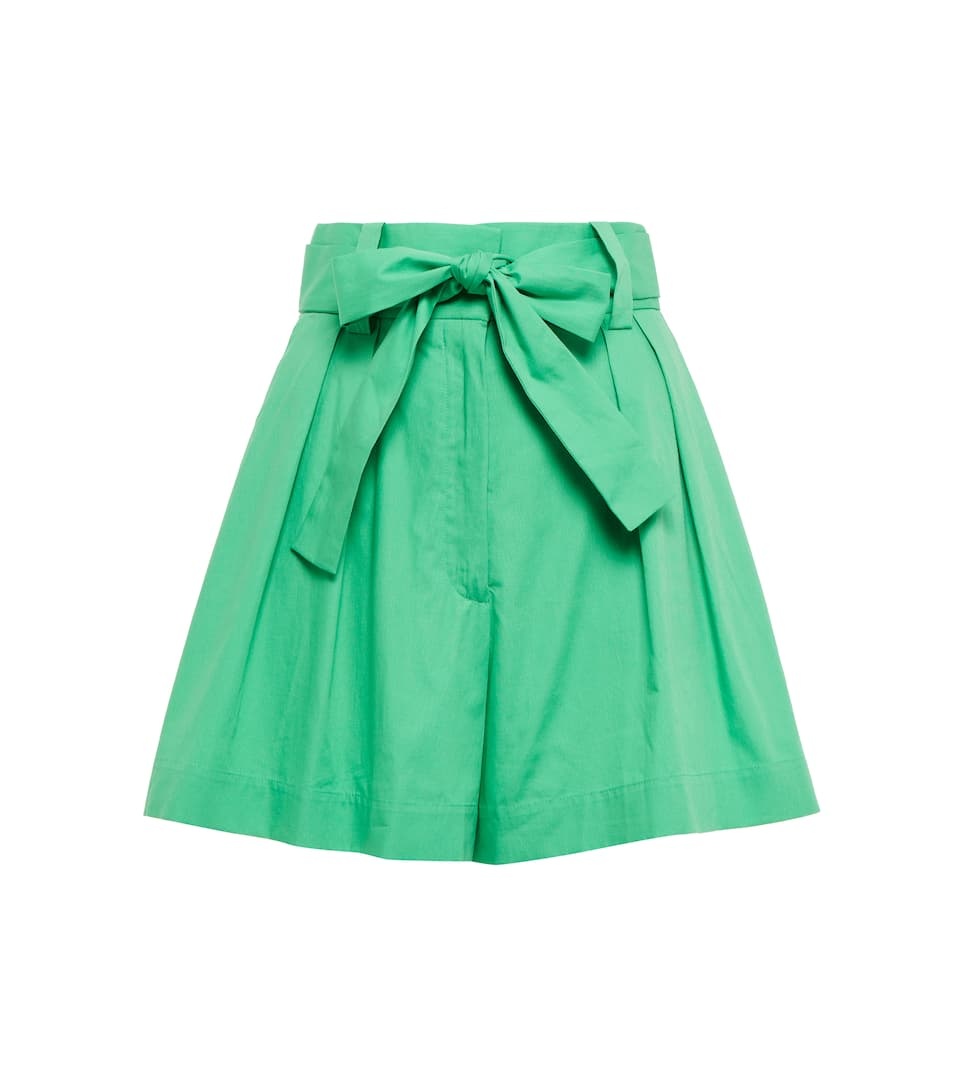 These structured wide-leg shorts from Oscar de la Renta form the foundation of an unexpectedly fresh evening style. Made from pure cotton in aloe green, they have a high-rise waistband with double front pleats and a matching self-tie waist belt. Product Details - Lining: 100% cotton, fully lined - Made in Italy - Detachable belt, Self-tie belt - Designer color name: Aloe - Closure: zipper, hook fastening - Pockets: side slit pockets - Care instructions: dry clean - Material: 100% cotton - Item number: P00747426 Size & Fit - Fits large to size - we recommend trying one size smaller - Adjustable at the waist - Mid-weight material - Wide-leg - High-waisted - Inseam length approx: 4,5cm-2" - The model seen in the picture is 178cm-5'10" and wearing a size US 2