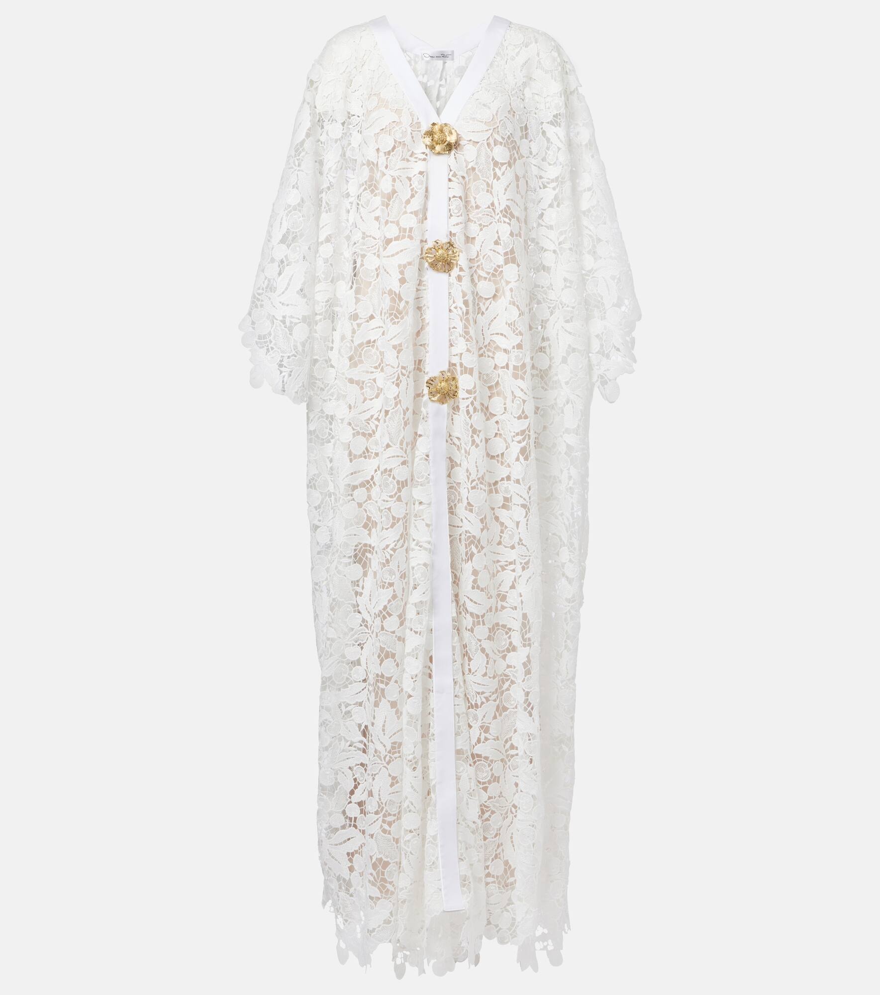 Embellished guipure lace gown White