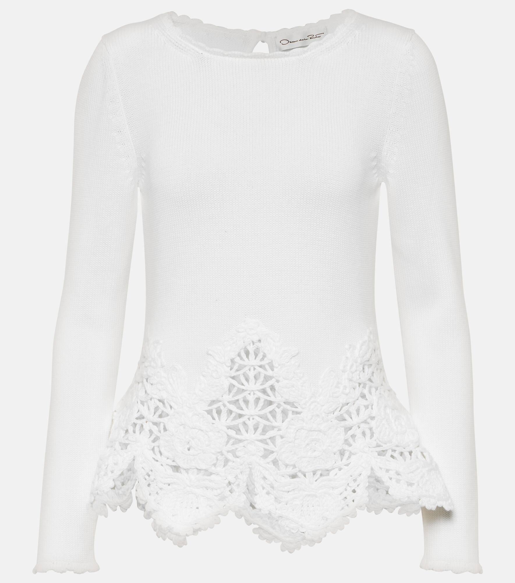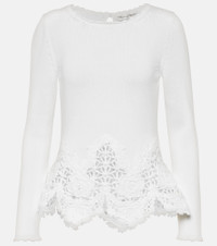 Lace-trimmed cotton sweater