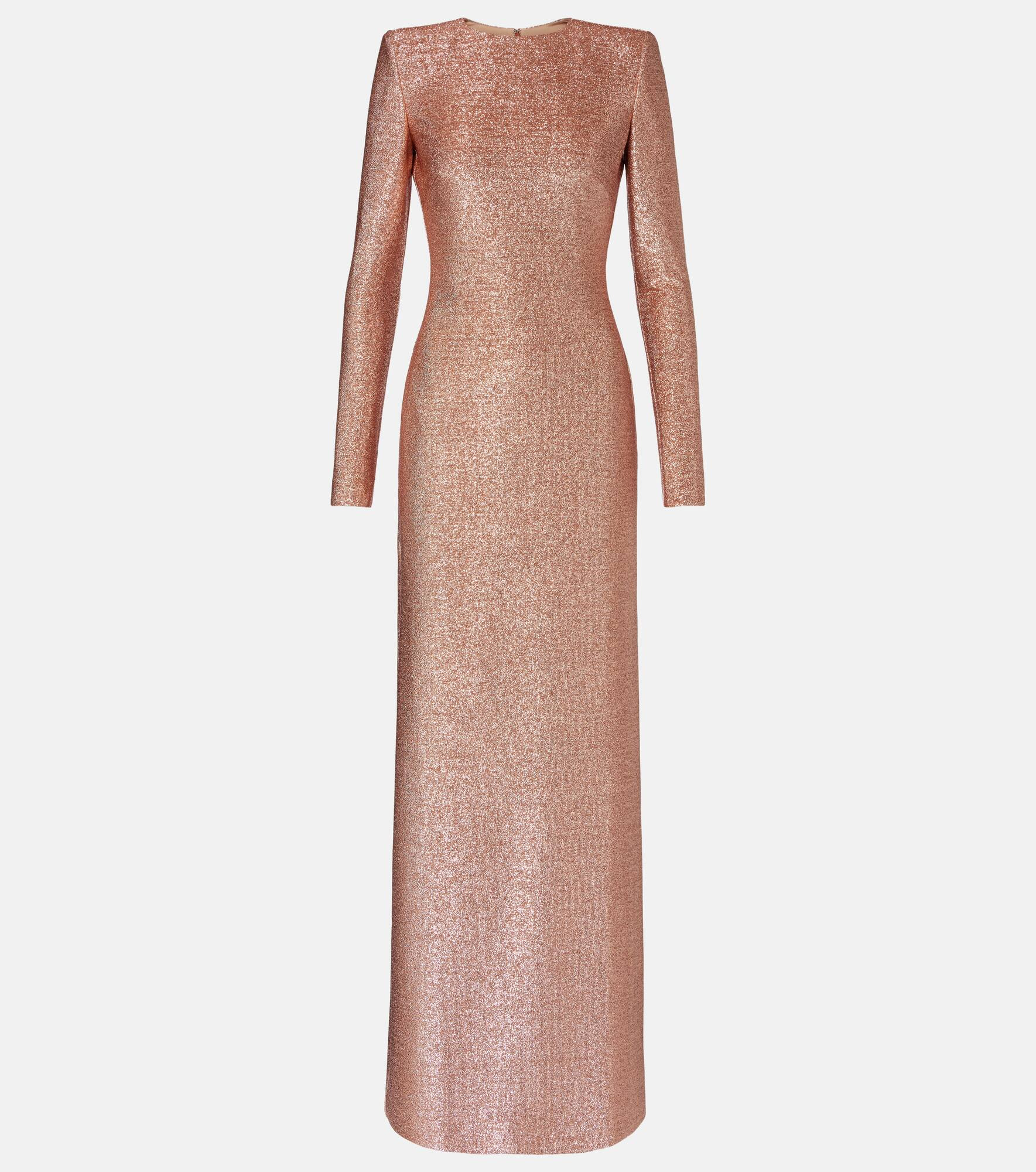 Oscar de la Renta's grandiose gowns are designed to grace red carpets and ballrooms. This floor-length design is crafted from dazzling lame. Product Details - Material: 73% viscose, 20% polyester, 7% elastane - Care instructions: dry clean - Made in Italy - Designer color name: Rose Gold - Item color: rose gold - Lining: 95% silk, 5% elastane - Half-lined - Closure: invisible zipper - Item number: P01080889 Size & Fit - True to size - Shoulder pad inserts - Cinched waist - Slightly stretchy fabric - slit length 64,0cm-25" - The model seen in the picture is 178cm-5'10" and wearing a size US 4