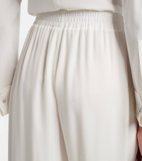 Oscar de la Renta can always be relied on for unequivocally glamorous designs. Made in Italy from ivory-hued silk, these pants are cut to a straight-leg silhouette with an elasticated mid-rise waistline. Product Details - Material: 100% silk - Care instructions: dry clean - Made in Italy - Designer color name: Ivory - Item color: white - Elasticated waistband - Pockets: side slit pockets - Item number: P01123692 Size & Fit - True to size - Elasticated waist - Non-stretchy fabric - Wide-leg - High-waisted - Height of model is 178cm-70" and wears a size US 4