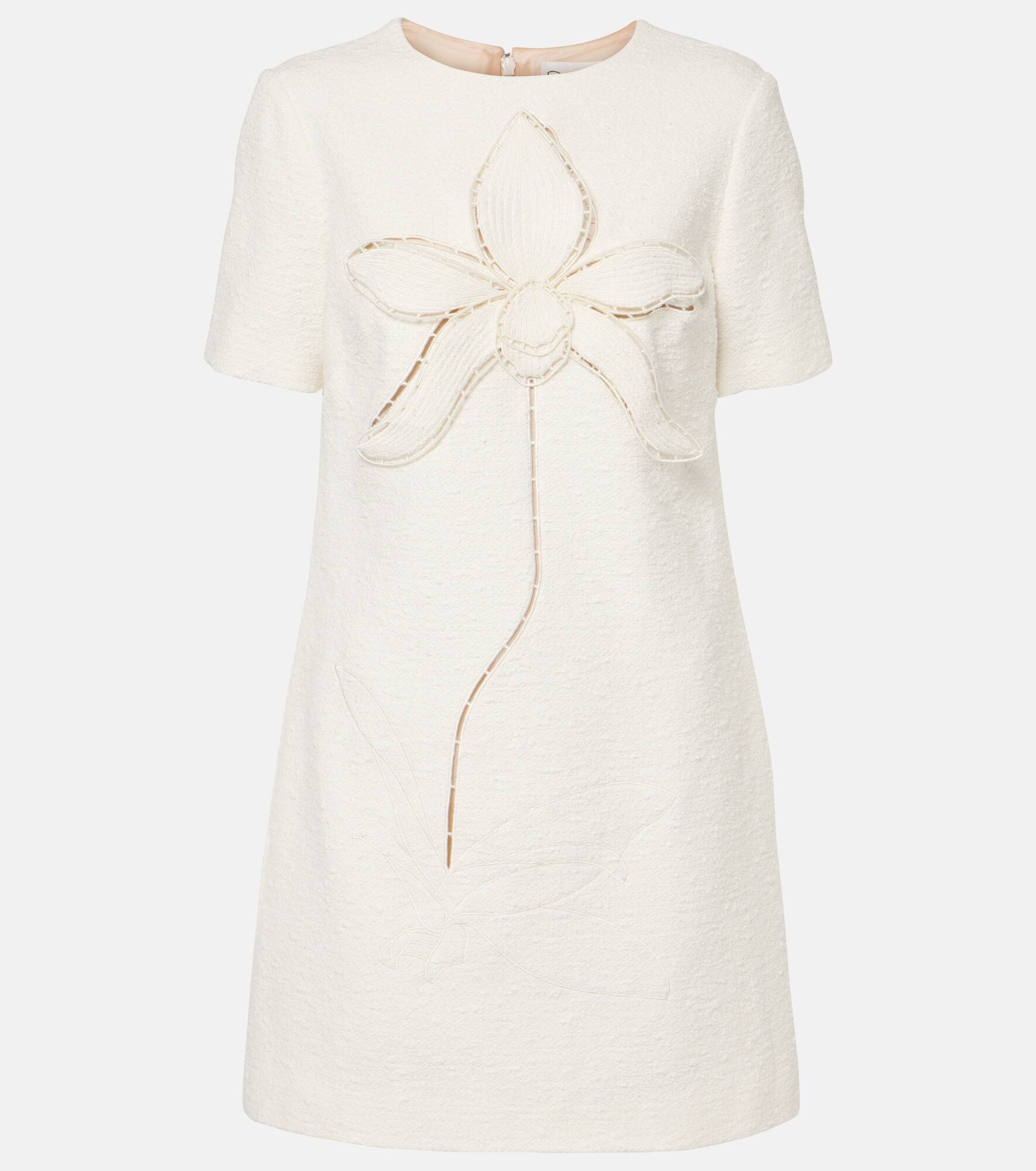 Orchid embroidered cotton tweed shift dress
