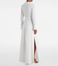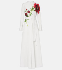 Known for its romantic rendering of blooms, Oscar de la Renta's designs bring the beauty of nature to ready-to-wear. This maxi dress is crafted from cotton-blend poplin and boasts the brand's Peony print. Product Details - Material: 97% cotton, 3% elastane - Care instructions: dry clean - Made in Italy - Designer color name: Burgundy/Ivory - Item color: white, multicolor - Lining: 100% cotton - Collar: band - Closure: concealed button placket - Fully lined - Detachable belt - Item number: P01080891 Size & Fit - True to size - Cinched waist - Non-stretchy fabric - slit length 73cm-28.5" - The model seen in the picture is 178cm-5'10" and wearing a size XS