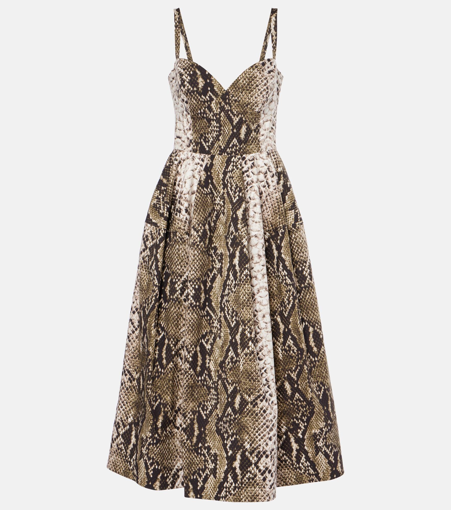 Snake-effect cotton-blend poplin gown