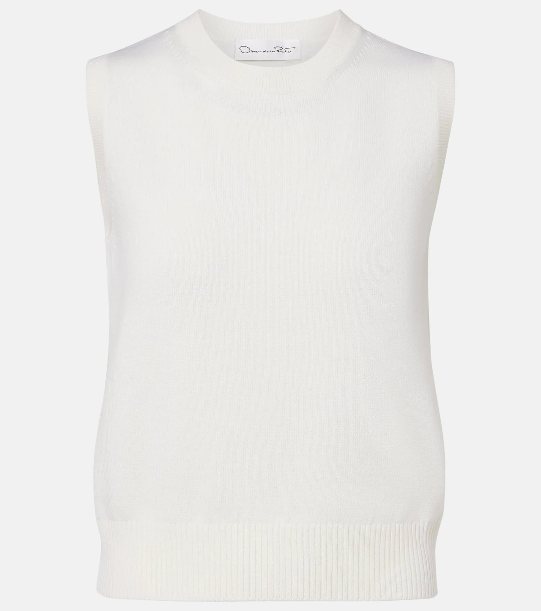 Oscar de la Renta can always be relied on for unequivocally stylish designs. Italian-crafted from virgin wool, this sweater vest is shaped into a classic silhouette with ribbed trims. Product Details - Material: 100% virgin wool - Care instructions: dry clean - Made in Italy - Color: white - Designer color name: Ivory - Collar: crewneck - Hem: ribbed - Item number: P01123659 Size & Fit - True to size - Straight fit - Slightly stretchy fabric - Falls to the hip - The model seen in the picture is 178cm-5'10" and wearing a size XS