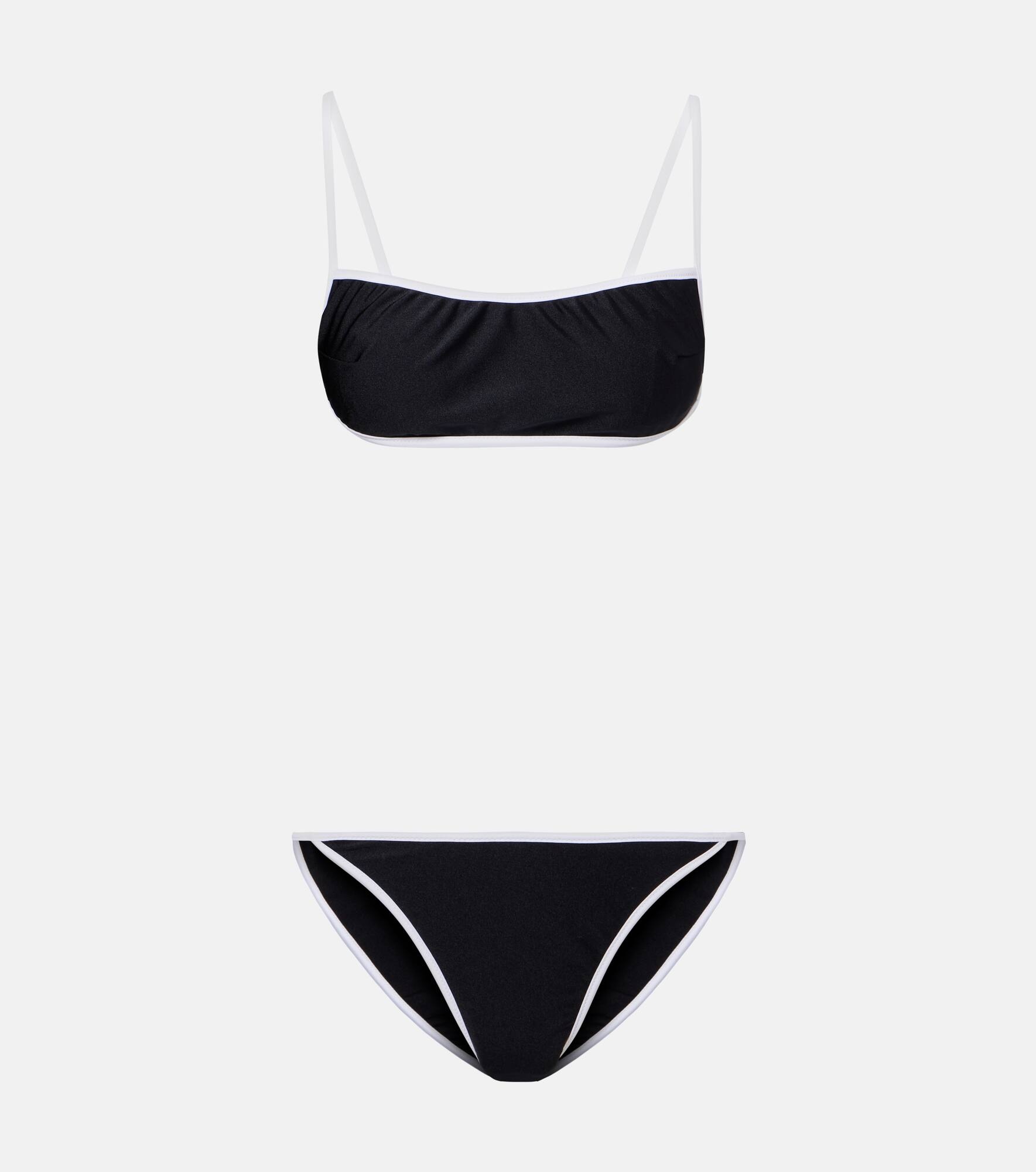Boasting a clean cut, this bikini is primed for glamorous days spent in the sun or by the pool. It includes a bandeau top with slim straps and classic bottoms. Product Details - Material: 80% polyamide, 20% elastane - Care instructions: hand wash - Made in Italy - Designer color name: Black White - Item color: black - Item number: P01042157 Size & Fit - True to size - Please note: small cups - Unpadded Top - Minimal coverage - High-cut leg - The model seen in the picture is 178cm-5'10", cup size B, and wearing a size S