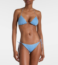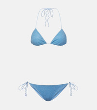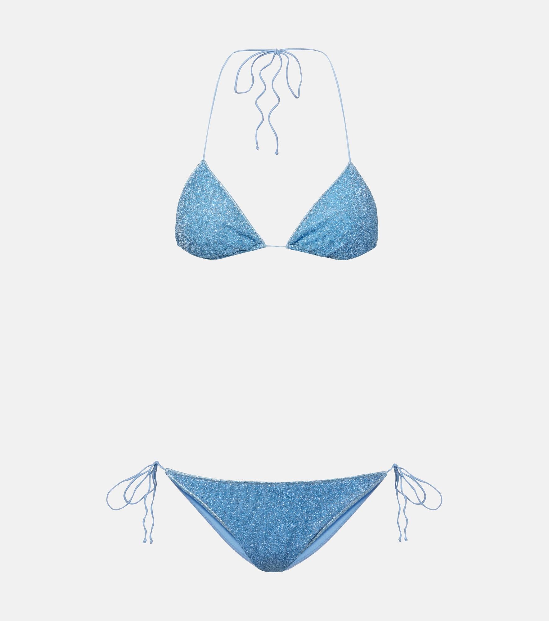 Crafted in Italy, the Lumiere bikini from Oseree features self-ties for closure. This design is finished with a subtle glitter effect. Product Details - Material: 64% polyamide, 36% metallic fibres - Care instructions: machine wash at 30 degrees - Made in Italy - Designer color name: Crystal - Item color: blue - Two-piece set - Lining: 80% polyamide, 20% elastane - Closure: self-ties - Item number: P01078637 Size & Fit - Fits small to size - we recommend trying one size larger - Removable padding - Minimal coverage - Low-cut leg - The model seen in the picture is 178cm-5'10", cup size B, and wearing a size S
