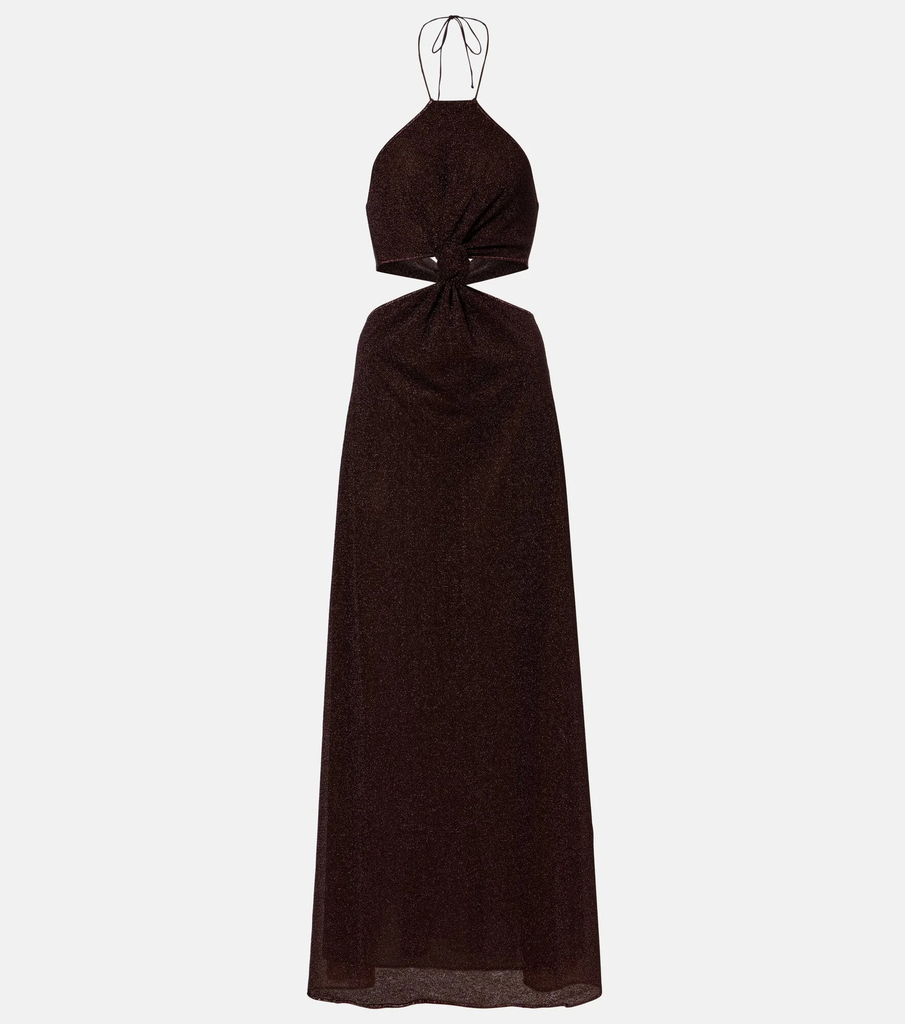 When the occasion calls for unforgettable stop-and-stare silhouettes, Oseree is the answer. Made from the signature Lumiere fabric, this halterneck maxi dress boasts cutouts at the waist and a central knot. Product Details - Material: 64% polyamide, 36% metallic fibres - Care instructions: hand wash - Made in Italy - Color: brown - Designer color name: Chocolate - Item color: brown - Closure: self-ties - Lining: 80% polyamide, 20% elastane - Item number: P01139493 Size & Fit - True to size - Low back - Cinched waist - The model seen in the picture is 178cm-5'10" and wearing a size S