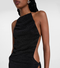 Crafted in Italy, the Lumiere maxi dress from Oseree showcases an open-back style. This design features a thigh-high slit on one side. Product Details - Material: 64% polyamide, 36% metallic fibres - Care instructions: machine wash at 30 degrees - Made in Italy - Designer color name: Black - Item color: black - Lining: 82% polyamide, 18% elastane - Closure: self-ties - Side slits - Item number: P01078614 Size & Fit - True to size - Low back - Cinched waist - Slightly stretchy fabric - The model seen in the picture is 178cm-5'10" and wearing a size S