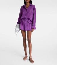 A pair of pull-on shorts is a comfortably stylish choice for your day. This piece is made with Oseree’s Lumiere fabric, which is threaded with very fine metallic strands to achieve a shimmering finish. Product Details - Material: 64% polyamide, 36% metallic fibres - Care instructions: machine wash at 30 degrees - Made in Italy - Designer color name: Purple - Item color: purple - Lining: 82% polyamide, 18% elastane - Elasticated waistband - Item number: P01078651 Size & Fit - True to size - Elasticated waist - Stretchy fabric - Wide-leg - The model seen in the picture is 178cm-5'10" and wearing a size S