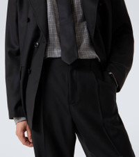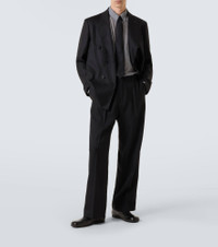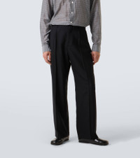 Our Legacy has achieved cult status for its Scandinavian-cool take on timeless silhouettes and custom-developed fabrics. Crafted from wool, the Borrowed chinos features a relaxed, wide-legged design with front pleats. Product Details - Material: 100% wool - Care instructions: dry clean - Made in Portugal - Designer color name: Black Panama Wool - Item color: black - Lining: 100% cotton - Details: 100% horn - Contains non-textile parts of animal origin - Closure: zip, hook, and button fastening - Pockets: slant pockets, back pockets - Belt loops - Single pleat - Chinos - Item number: P00706116 Size & Fit - True to size - Non-stretchy fabric - Straight leg - Height of model is 189cm-74.5" and wears a size 50