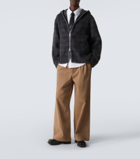 Our Legacy has achieved cult status for its Scandinavian-cool take on timeless silhouettes and custom-developed fabrics. This zip-up hoodie is knitted from soft alpaca and wool-blend yarns and finished with a polo-inspired collar. Product Details - Material: 36% wool, 26% polyester, 22% acrylic, 11% alpaca wool, 3% polyamide, 2% other fibers - Care instructions: dry clean - Made in Portugal - Color: grey - Designer color name: Fuzzed Plum Check Hairy Wool - Item color: gray, purple - Hood - Closure: two-way zipped front - Item number: P01138662 Size & Fit - True to size - Designed for a loose fit - Non-stretchy fabric - Falls to the hip - Height of model is 192cm-75.5" and wears a size 50
