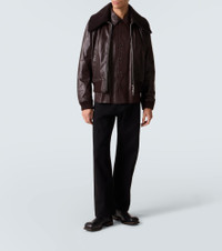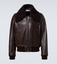 Our Legacy has achieved cult status for its Scandinavian-cool take on timeless silhouettes and custom-developed fabrics. Made from smooth leather, the Pharos bomber jacket features a two-way zipped front and a detachable ribbed-knit collar. Product Details - Material: 100% calf leather - Care instructions: specialist clean - Made in Turkey - Designer color name: Umber Brown Fluid Calfskin - Item color: brown - Trim: 100% shearling - Lining: 52% viscose, 48% cotton - Contains non-textile parts of animal origin - Hardware color: silver - Detachable collar - Cuff: ribbed - Pockets: buttoned pockets, internal pocket - Closure: two-way zipped front - Hem: ribbed - Item number: P01122202 Size & Fit - True to size - Straight fit - Elasticated hem - Non-stretchy fabric - Falls to the hip - Height of model is 188cm-74" and wears a size IT 50