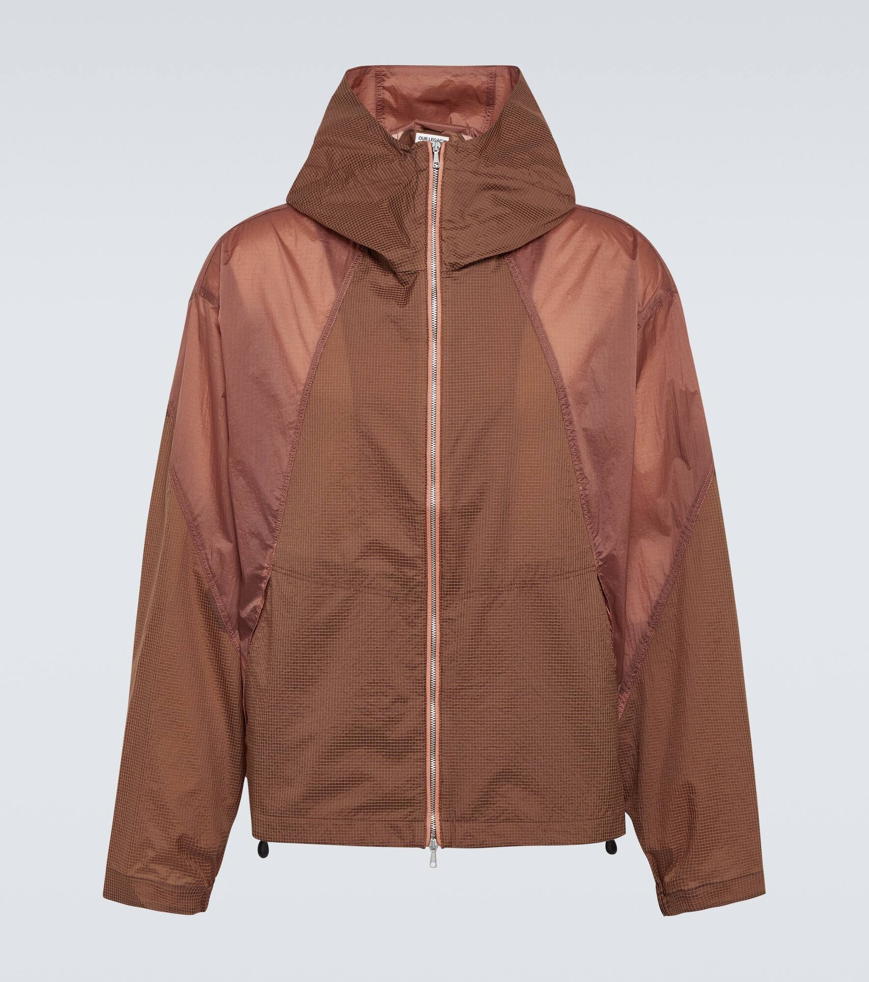 Product Details - Material: 100% polyamide - Care instructions: machine wash at 30 degrees - Made in Lithuania - Designer color name: Golden Brown - Material II: 100% polyamide - Closure: zipped front - Pockets: side slit pockets - Hood - Item number: P00909132 Size & Fit - True to size - Designed for a loose fit - Adjustable hem - Non-stretchy fabric - Falls to the hip - The model in the picture is 185cm-6'1" and wearing a size IT 48