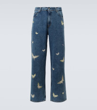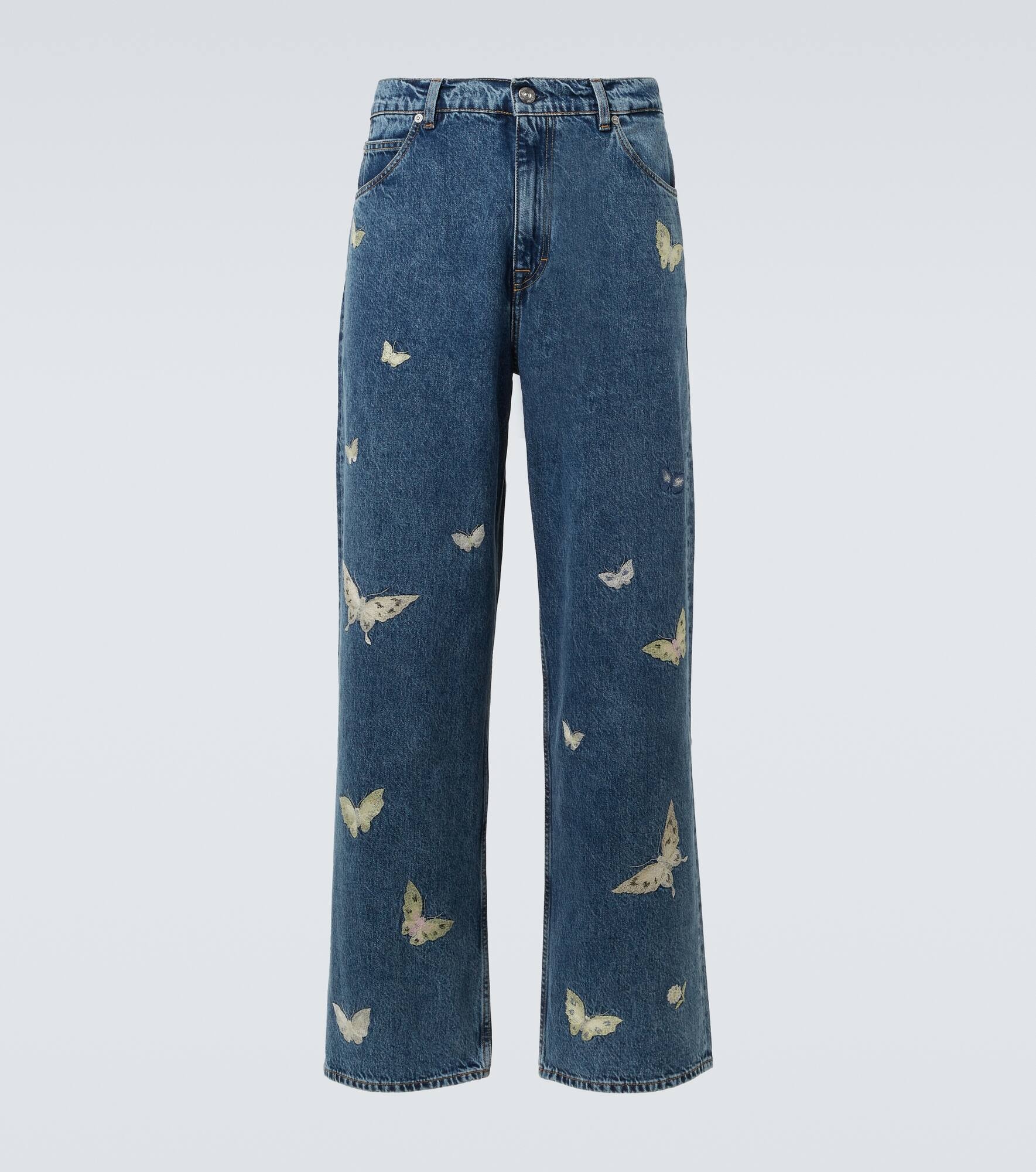 Product Details - Material: 100% cotton - Care instructions: machine wash cold - Made in Portugal - Designer color name: Indigo Butterfly - Item color: blue - Closure: zip and button fastening - Pockets: five pockets - Belt loops - Pocket lining: 100% cotton - Contains non-textile parts of animal origin - Item number: P01049214 Size & Fit - True to size - Non-stretchy fabric - Wide-leg - Mid-rise - Height of model is 189cm-74.5" and wears a size 32