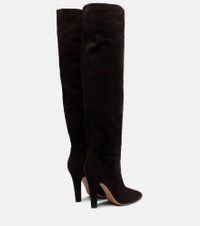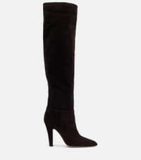 The Elsa over-the-knee boots from Paris Texas are crafted in Italy from suede. The pair features pointed toes, sturdy 100mm heels, and clean lines. Product Details - Upper: calf leather (suede) - Lining: leather - Sole: leather insole and sole - Toe shape: pointed toe - Made in Italy - Includes: shoe box, dust bag - Designer color name: Ebano - Item color: brown - Item number: P01100208 Size & Fit - True to size - European sizes - 10cm-4" heel (size EU 38) - 51cm-20" shaft height (size EU 38) - 40cm-15.5" shaft width (size EU 38) - shaft width measured on largest part of boot