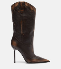 Invest in timeless staples like the Lidia mid-calf boots from Paris Texas. Standing on 105mm stiletto heels and inspired by cowboy silhouettes, this pair is made from supple leather featuring brown patina-like accents. Product Details - Upper: leather - Lining: leather - Sole: leather insole and sole - Toe shape: pointed toe - Made in Italy - Includes: shoe box, dust bag - Designer color name: Ebano - Item color: brown - Item number: P01099359 Size & Fit - True to size - European sizes - 10,5cm-4" heel (size EU 38) - 30cm-12" shaft height (size EU 38) - 37cm-14.5" shaft width (size EU 38) - shaft width measured on largest part of boot