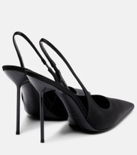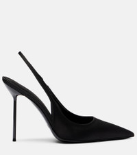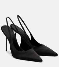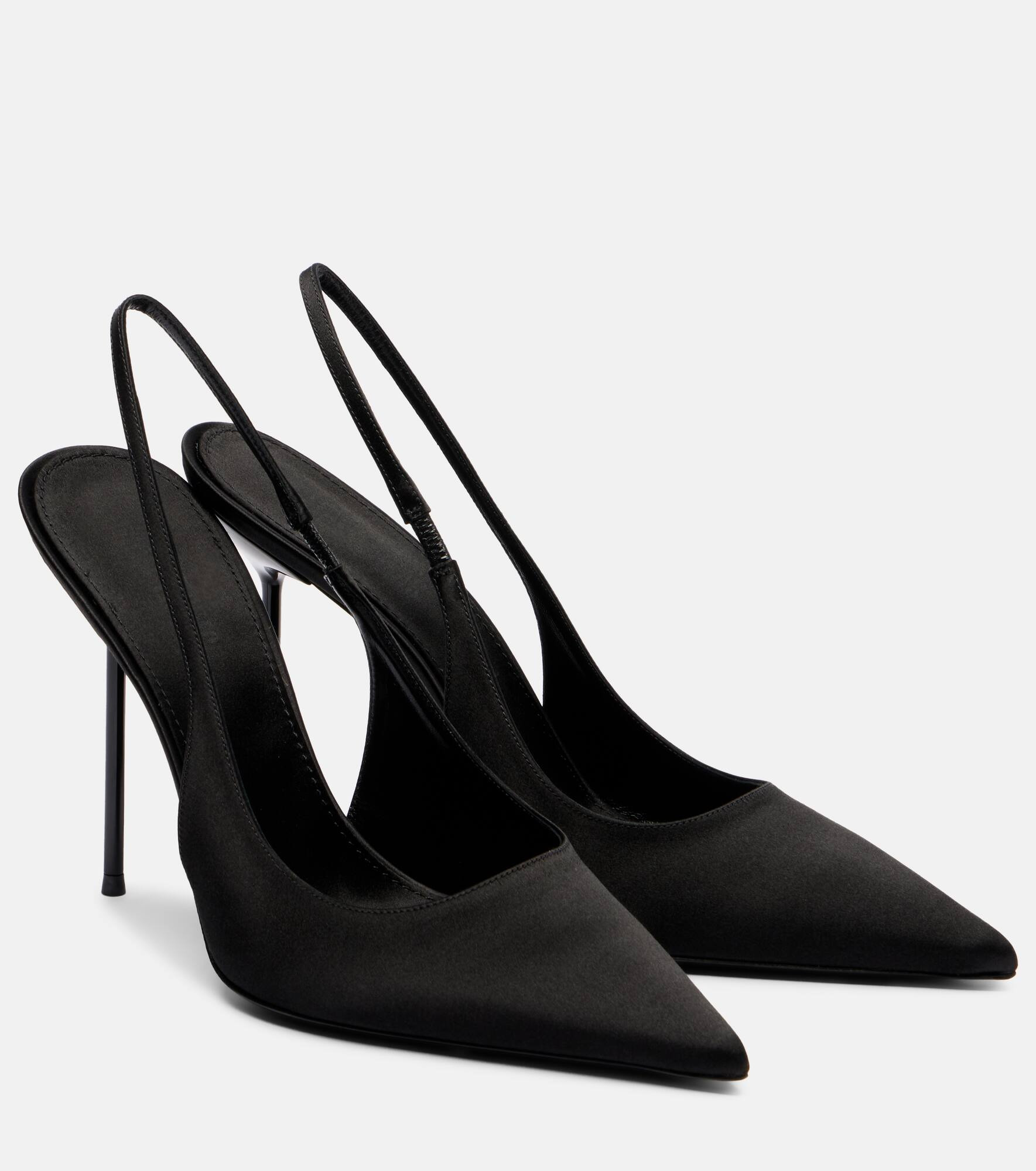 The Lidia slingback pumps from Paris Texas are made in Italy from glossy satin. The pair boasts sleek, pointed toes and slender 105mm stiletto heels for a chic finish. Product Details - Upper: satin - Lining: fabric - Sole: fabric insole, leather sole - Toe shape: pointed toe - Made in Italy - Includes: shoe box, dust bag - Designer color name: Black - Item color: black - Slingback strap - Item number: P01099376 Size & Fit - True to size - European sizes - 10,5cm-4" heel (size EU 38)