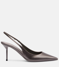 The Lidia slingback pumps from Paris Texas are made in Italy from glossy satin. The pair boasts sleek, pointed toes and slender 70mm stiletto heels for a chic finish. Product Details - Upper: satin - Lining: satin - Sole: leather insole and sole - Toe shape: pointed toe - Made in Italy - Includes: shoe box, dust bag - Designer color name: Ash - Item color: gray - Slingback strap - Item number: P01099371 Size & Fit - True to size - European sizes - 7cm-3" heel (size EU 38)