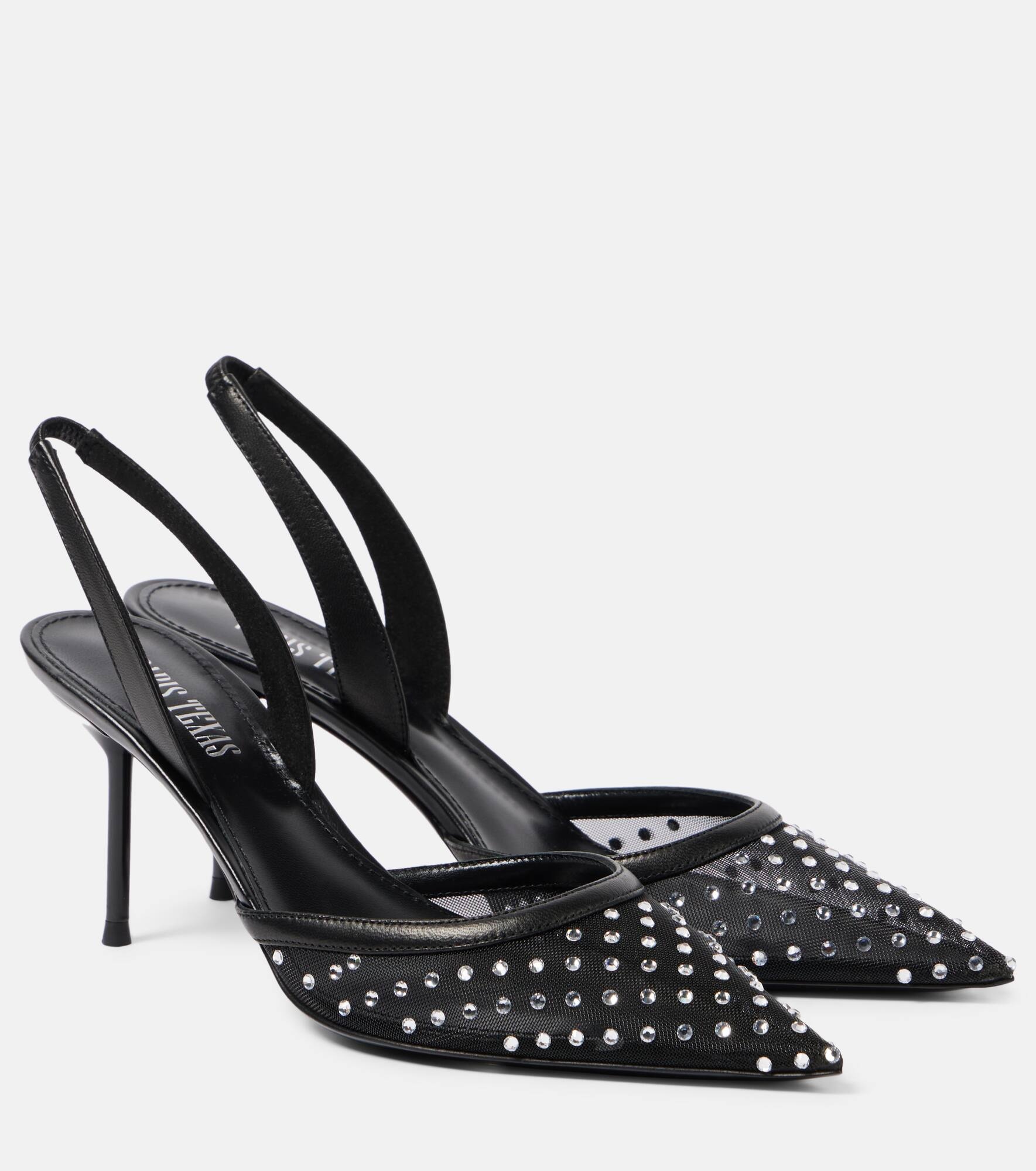 Product Details - Upper: fabric - Lining: leather - Sole: leather insole and sole - Toe shape: pointed toe - Made in Italy - Includes: shoe box, dust bags - Designer color name: Black Crystal Diamond - Closure: elasticated strap - Item number: P00944891 Size & Fit - True to size - Best fit for narrow feet - European sizes - 8cm-3" heel (size EU 38)