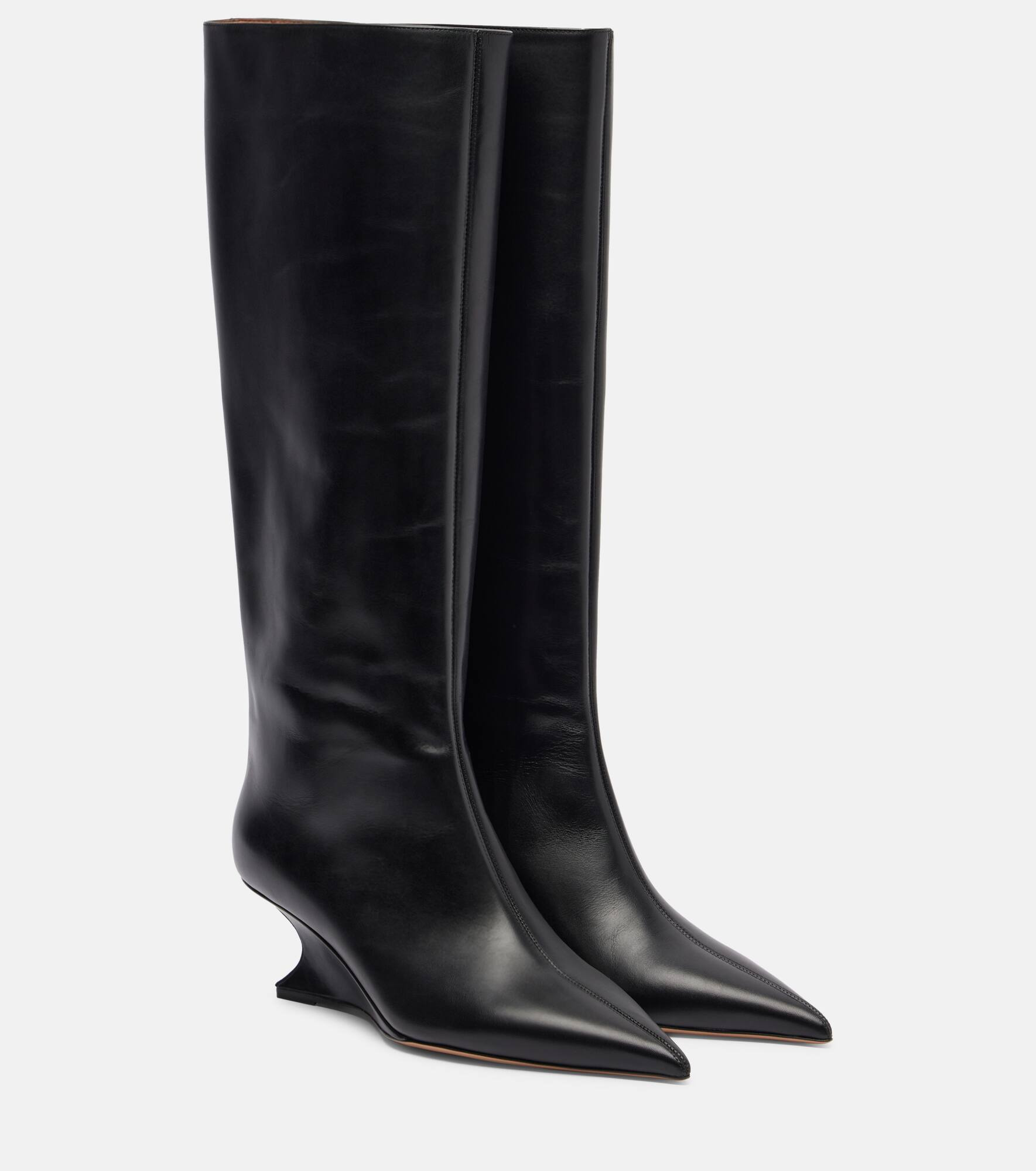 Italian label Paris Texas brings to life striking shoe silhouettes for modern sensibilities. These Nina knee-high boots are made from smooth leather and stand on inwardly curved 50mm heels. Product Details - Upper: calf leather - Lining: leather - Sole: leather insole and sole - Toe shape: pointed toe - Made in Italy - Includes: shoe box, dust bag - Designer color name: Black - Item color: black - Item number: P01099364 Size & Fit - True to size - European sizes - 5cm-2" heel (size EU 38) - 40cm-15.5" shaft height (size EU 38) - 40cm-15.5" shaft width (size EU 38) - shaft width measured on largest part of boot